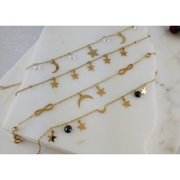 Zmysłowa, delikatna bransoletka z cyrkoniami, księżycami i gwiazdką.