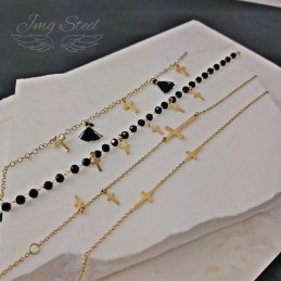 Zmysłowa, delikatna bransoletka typu celebrytka z krzyżykami.
