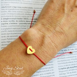 Bransoletka serce na czerwonym sznureczku.