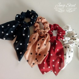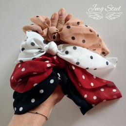 Gumka do włosów scrunchie w grochy beżowo-brązowa