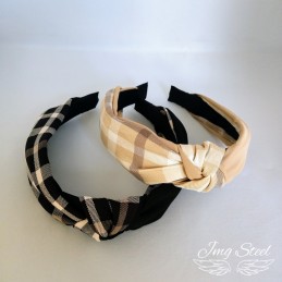 Opaska do włosów Beżowa w kratę.