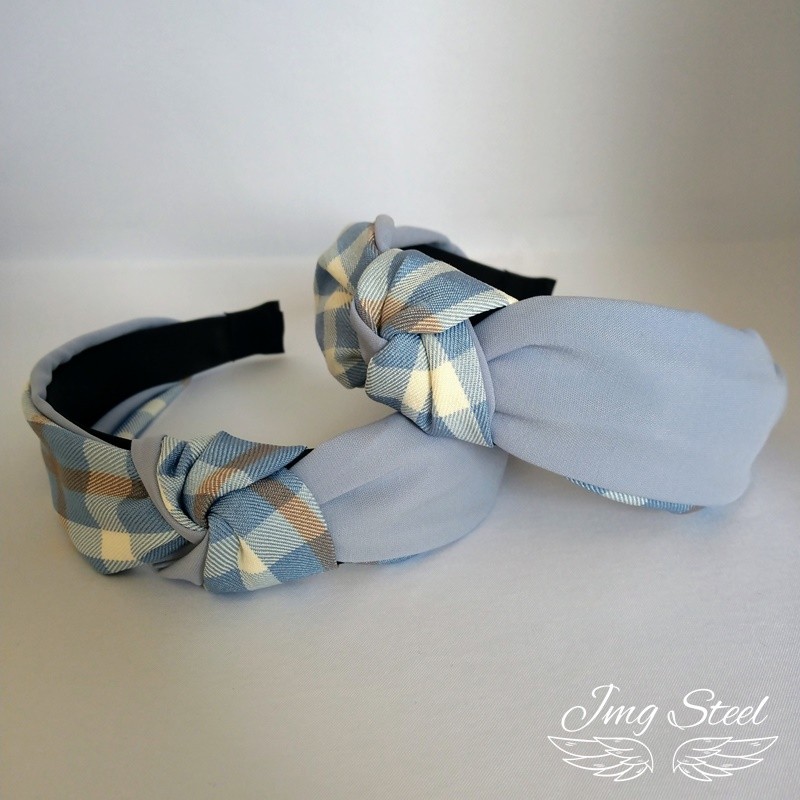 Opaska do włosów Niebieska w kratę.