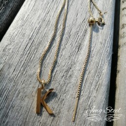 Delikatny kostkowy łańcuszek z literą K z oryginalną regulacją.
