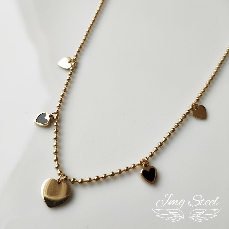 Kuleczkowy łańcuszek z pięcioma serduszkami.