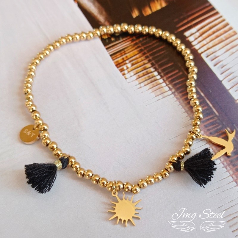Bransoletka na gumce ze słońcem i chwostami.