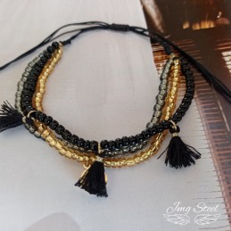 Elementy dodatkowe: koraliki w 3 kolorach (czarne, złote o srebrne) oraz chwosty.