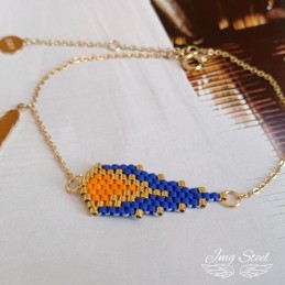 Bransoletka z piórkiem utkanym z kolorowych koralików. Wykonana z wysokiej jakości stali chirurgicznej 316L.