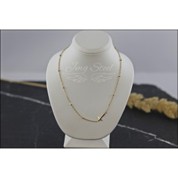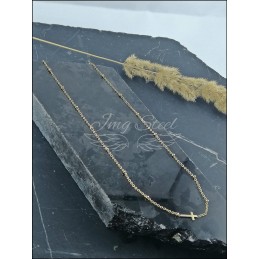 Łańcuszek z krzyżykiem ze złotymi kuleczkami.